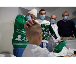 Los miembros del equipo verdiblanco acudieron para repartir ilusión y aprovecharon la ocasión para donar algunos regalos a los niños que estaban hospitalizados.